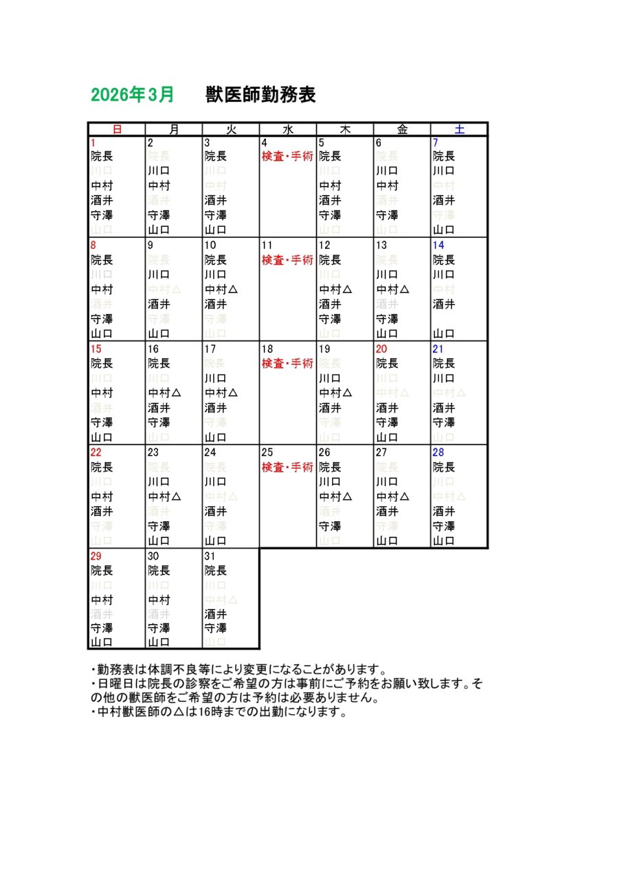 ※日曜日は院長の診察をご希望の方は予約診療となります。
